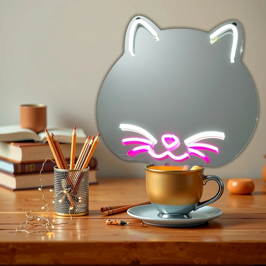 آینه دکوراتیو نئونی طرح پیشی مناسب برای دکور اتاق شما.