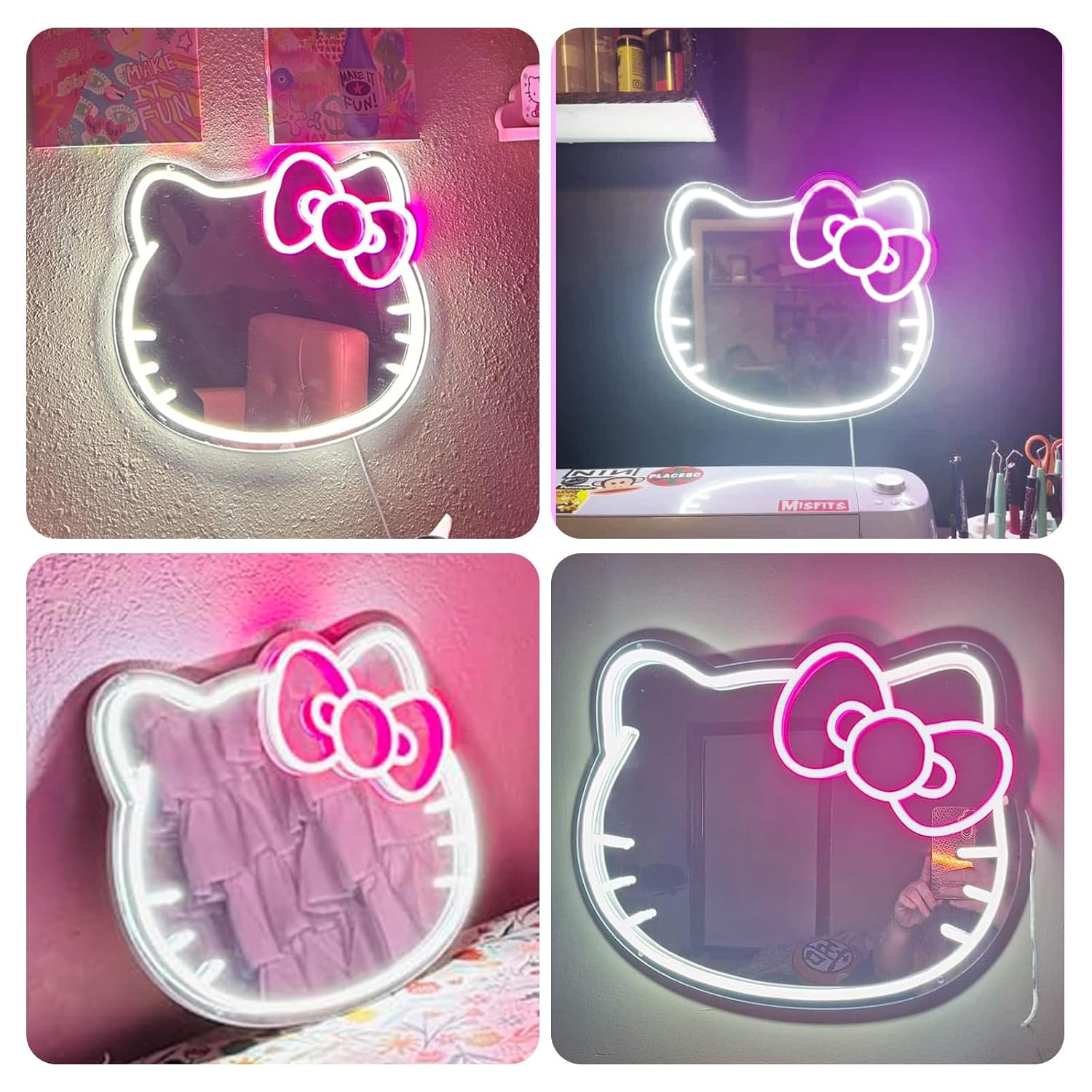 آینه دکوراتیو نئونی طرح هلو کیتی (Hello Kitty) مناسب برای دکور اتاق شما.